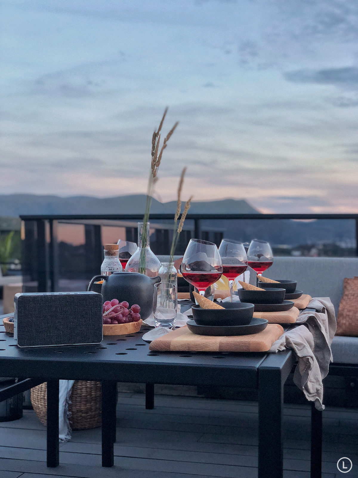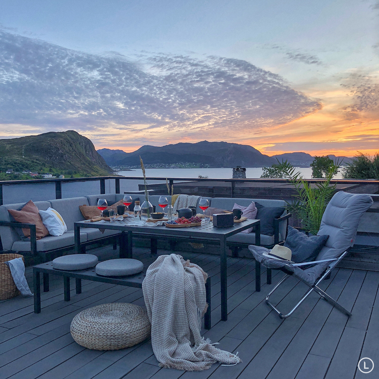 På store flater er det viktig å tenke soner når man innreder. Det får man ved å bruke tepper og for eksempel planter som en slags innramming. Store grønne planter gjør seg også veldig godt som sonedelere. Planter og blomster skaper liv i interiøret, og i kombinasjon med levende lys, setter man stemningen. Her har jeg innredet så man får nyte godt av utsikten i loungedelen.